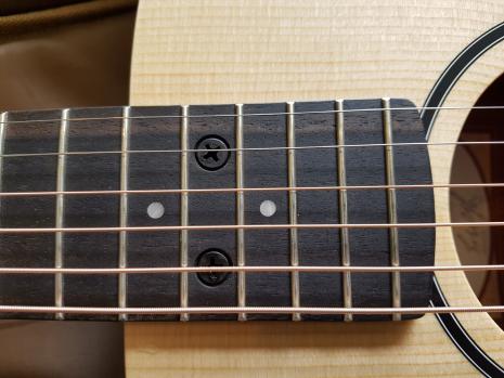 Während der Ahornhals nicht besonders hervorsticht, können sich Kopfplatte, Sattel- und Griffbrettholz, und die Griffbretteinlagen sehen lassen. Eine im passenden Walnussholz furnierte Kopfplatte erwartet man bei einer solchen Gitarre nicht, ebenso wenig wie eine massive Decke. Auch dass beim Saitenhalter und Griffbrett teures Ebenholz verwendet wurde, ist nicht selbstverständlich und wertet die BT1 Baby Taylor Walnut auf. Sattel und Steg aus dem Kunststoff Nubone entwickelt sich heutzutage zum Standard, als Ersatz für echte Knochen. Nubone soll im Vergleich sogar tonale Vorteile bringen, da er mit gleichmäßiger Dichte gefertigt wird und dadurch der Sound stabiler bleibt.